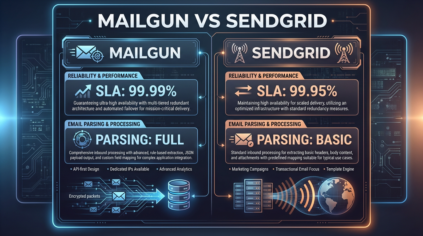 Both Mailgun and SendGrid publish 99.99% uptime SLAs. At that SLA level, permitted annual downtime is under an hour. The SLA parity means infrastructure uptime is not a differentiator for most teams; support responsiveness is.
